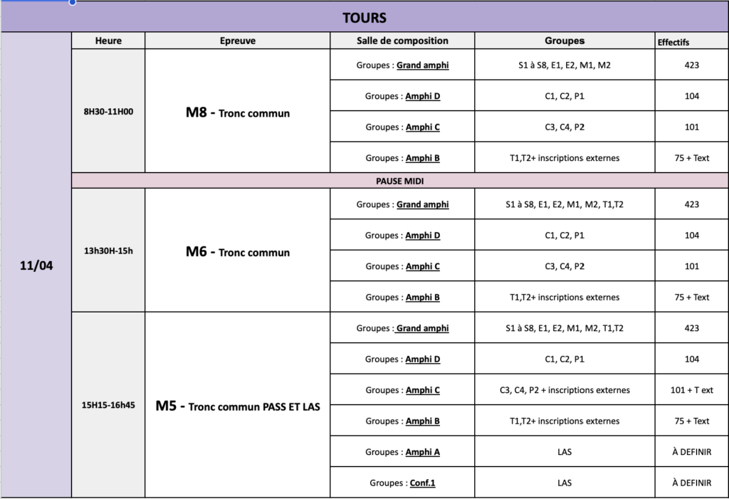 Semaine type au Tutorat